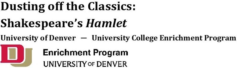 On Saturday evening September 21, 2024 at 7:00pm – between the third and final Wednesday evening sessions – we will attend the fall 2024 production of Hamlet at the Denver Center for the Performing Arts.